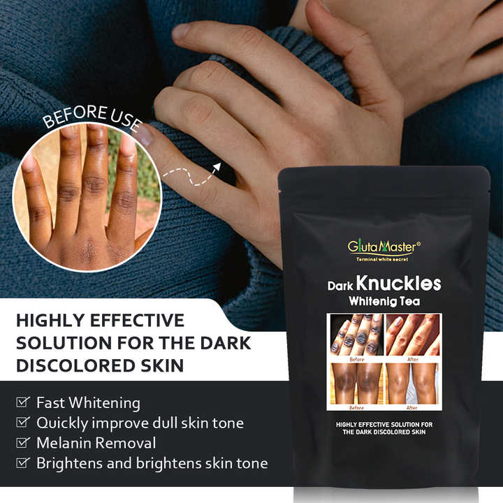 DARK KNUCKLES WHITENING TEA FOR ELBOW AND KNEES is a skincare product specifically formulated to target dark spots, hyperpigmentation, and uneven skin tone, especially on areas such as elbows and knees. Here’s a detailed breakdown of its features and benefits: