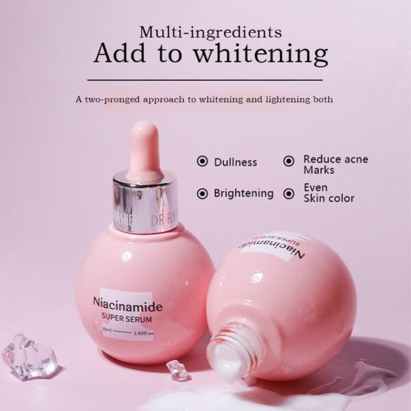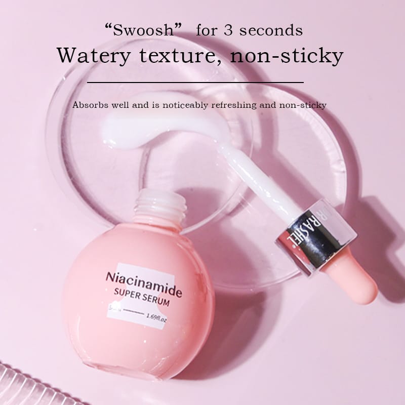 Niacinamide super serum is a product designed to improve the clity and shine of the skin. It can effectively reduce blemishes, fade spots and even out skin tone, helps smooth shin texture and promotes clear and bright skin. Makes skin look brighter right after application and gives skin an ultimate aura radiance.