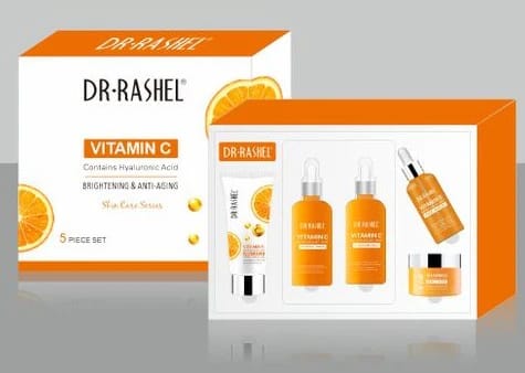 Dr Rashel Vitamin C Skin Care Series , Contains Hyaluronic Acid, Anti Aging and Collagen Essence ( Pack Of 5 Piece Set ) (+ 1 Pcs of Mask gift)
