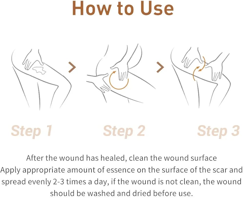 - Gently Massage: Apply the serum to the scar, stretch mark, or affected area and gently massage it in circular motions until fully absorbed.