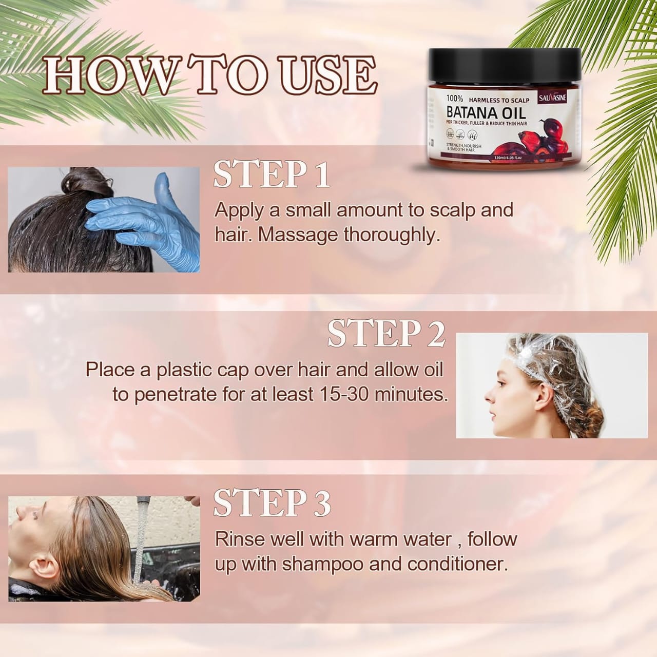 HYDRATING AND MOISTURIZING: Use batana hair oil as a moisturizer to care for your hair every day. The deeply penetrating hair roots give your hair natural shine and moisture, making your hair feel soft and easy to manage