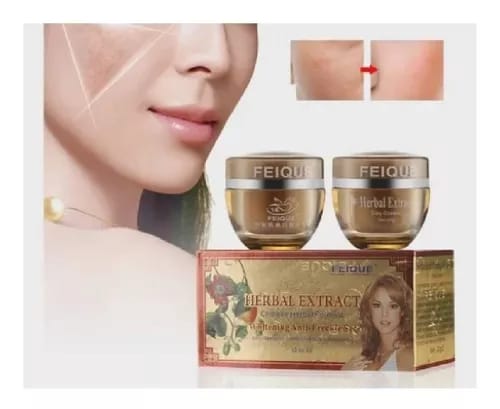 The FEIQUE Herbal Extract Whitening Anti-Freckle Cream 2-in-1 Set is a skincare solution comprising day and night creams formulated to enhance skin brightness and address pigmentation issues.