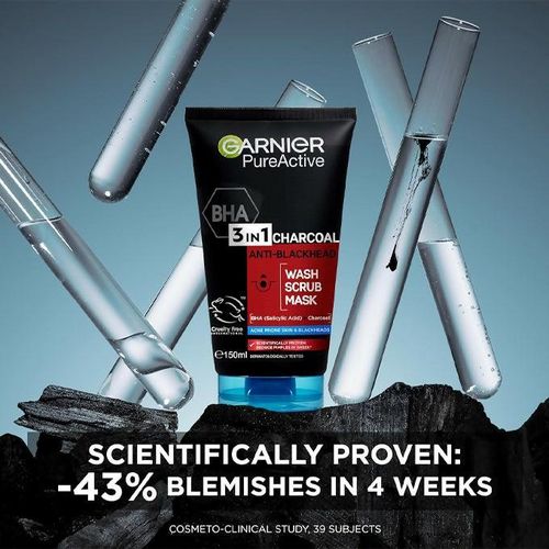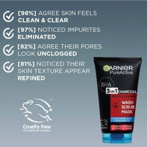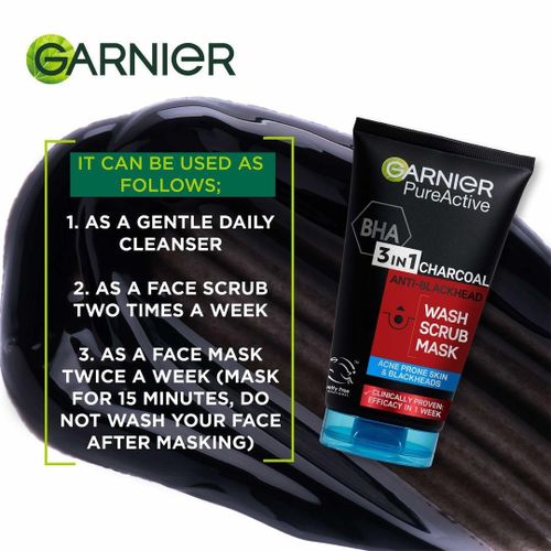 (Original )Garnier Pure Active 3 In1 Charcoal Anti Blackhead Mask Wash Scrub -150ml.