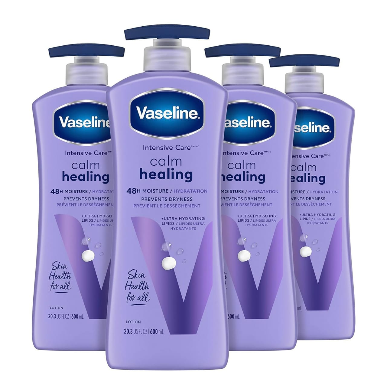 (Original new)Vaseline Intensive Care Calm Healing Body Lotion 4 ct for Dry Skin with Ultra-Hydrating Lipids for Heal and Restore 20.3 oz