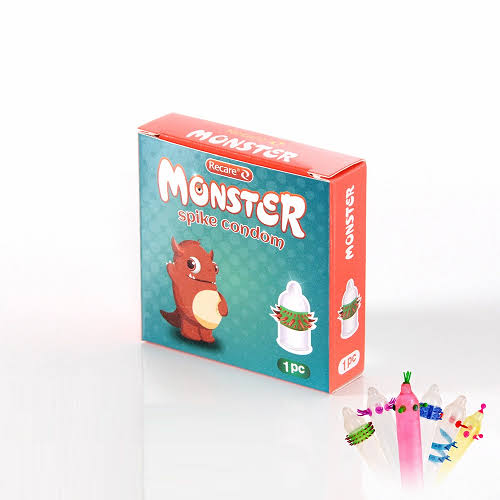 The Recare Monster Spike Condom in Blue is a uniquely designed latex condom aimed at enhancing intimate experiences through its distinctive features.
