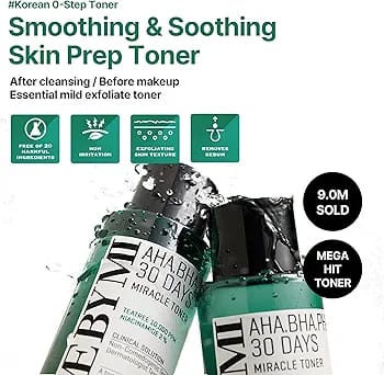 The SOME BY MI AHA-BHA-PHA 30 Days Miracle Toner is a revolutionary skincare product designed for troubled skin. This toner features a unique blend of AHA, BHA, and PHA that gently exfoliates, cleanses, and hydrates the skin. It is formulated to improve skin texture, reduce acne, and control excess oil, delivering visible results in just 30 days. Ideal for daily use, this toner revitalizes the skin and balances its pH levels, making it a favorite among skincare enthusiasts.
